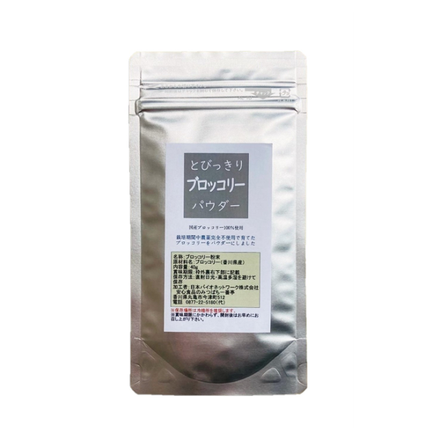 香川県産、栽培期間中農薬完全不使用のブロッコリーパウダーです。栽培期間中農薬、除草剤、化学肥料、有機肥料は一切使用していません。