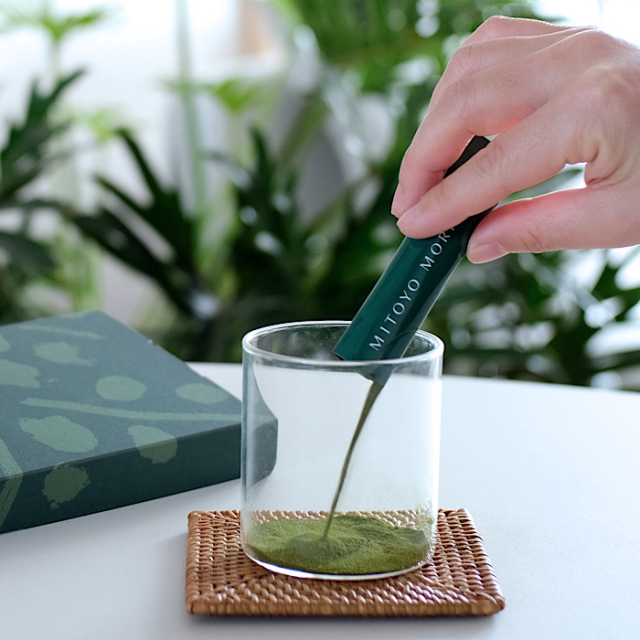 冷水にもサッと溶ける顆粒状、緑茶や抹茶のような芳醇でまろやかな味わいが特徴です。